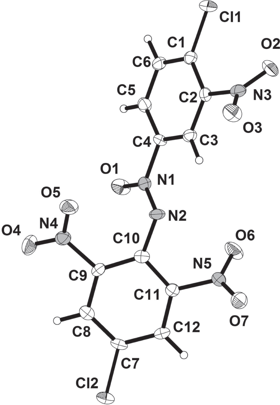 - Crystal structure of 2-(4-chloro-2,6-dinitrophenyl)-1-(4-chloro-3-nitrophenyl)diazene 1-oxide, C12H5Cl2N5O7