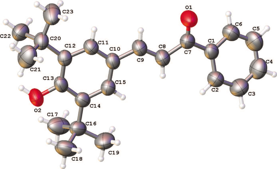Crystal structure of (E)-3-(3,5-di-tert-butyl-4-hydroxyphenyl)-1-phenylprop-2-en-1-one, C23H28O2