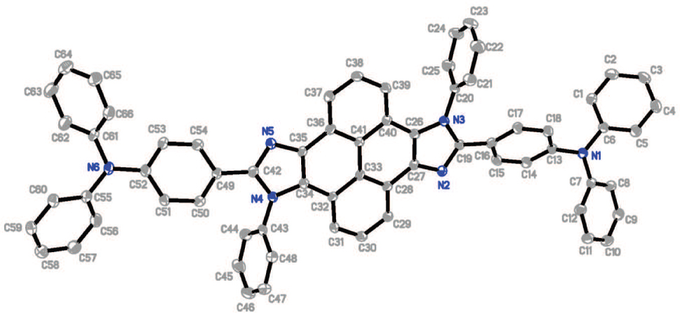 - Crystal structure of 4,4′-(4,10-diphenyl-4,10-dihydropyreno[4,5-d:9,10-d′]diimidazole-5,11-diyl)bis(N,N-diphenylaniline), C66H44N6