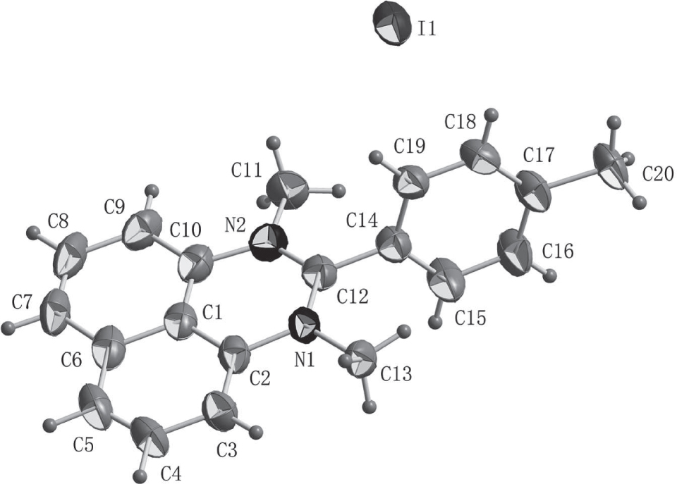 - Crystal structure of 1,3-dimethyl-2-(p-tolyl)-1H-perimidin-3-ium iodide 1.5 hydrate, C20H22IN2O1.5