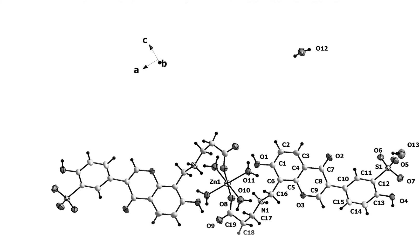 - Synthesis and crystal structure of trans-tetraaqua-bis(3-(((7-hydroxy-3-(4-hydroxy-3-sulfonatophenyl)-4-oxo-4H-chromen-8-yl)methyl)ammonio)propanoato-κO)zinc(II) tetrahydrate, C38H48N2O26S2Zn