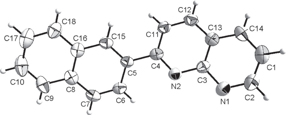 Home Crystal structure of 2-(naphthalen-2-yl)-1,8-naphthyridine, C18H12N2