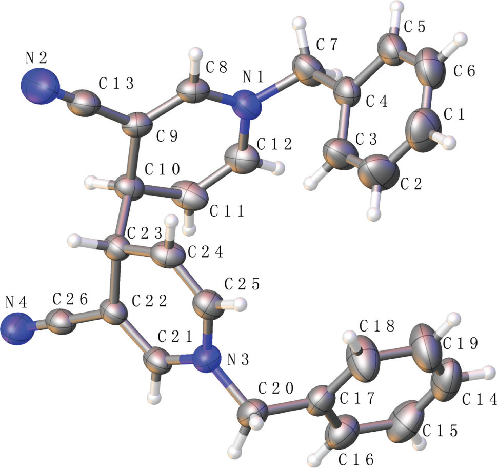 - Crystal structure of 1,1′-dibenzyl-3,3′-dicyano-1,1′,4,4′-tetrahydro-4,4′-bipyridine, C26H22N4