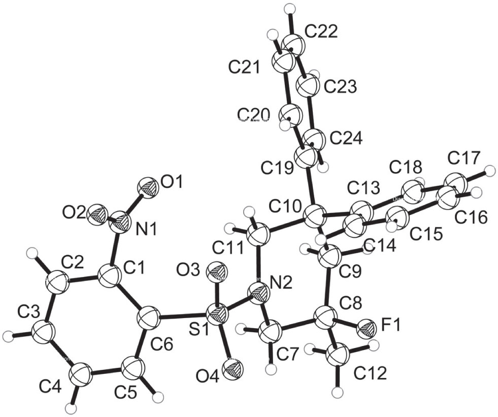 - Crystal structure of 3-fluoro-3-methyl-1-((2-nitrophenyl)sulfonyl)-5,5-diphenylpiperidine, C24H23FN2O4S