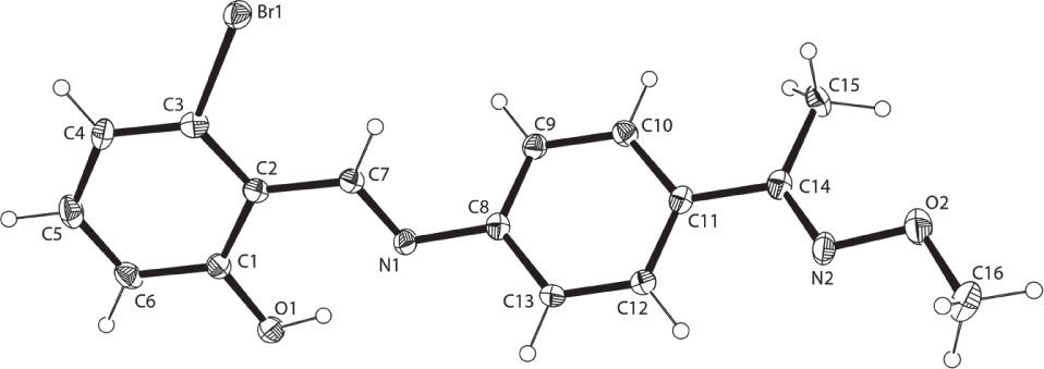 - Crystal structure of (E)-1-(4-(((E)-2-bromo-6-hydroxybenzylidene)amino)phenyl)ethan-1-one O-methyl oxime, C16H15BrN2O2