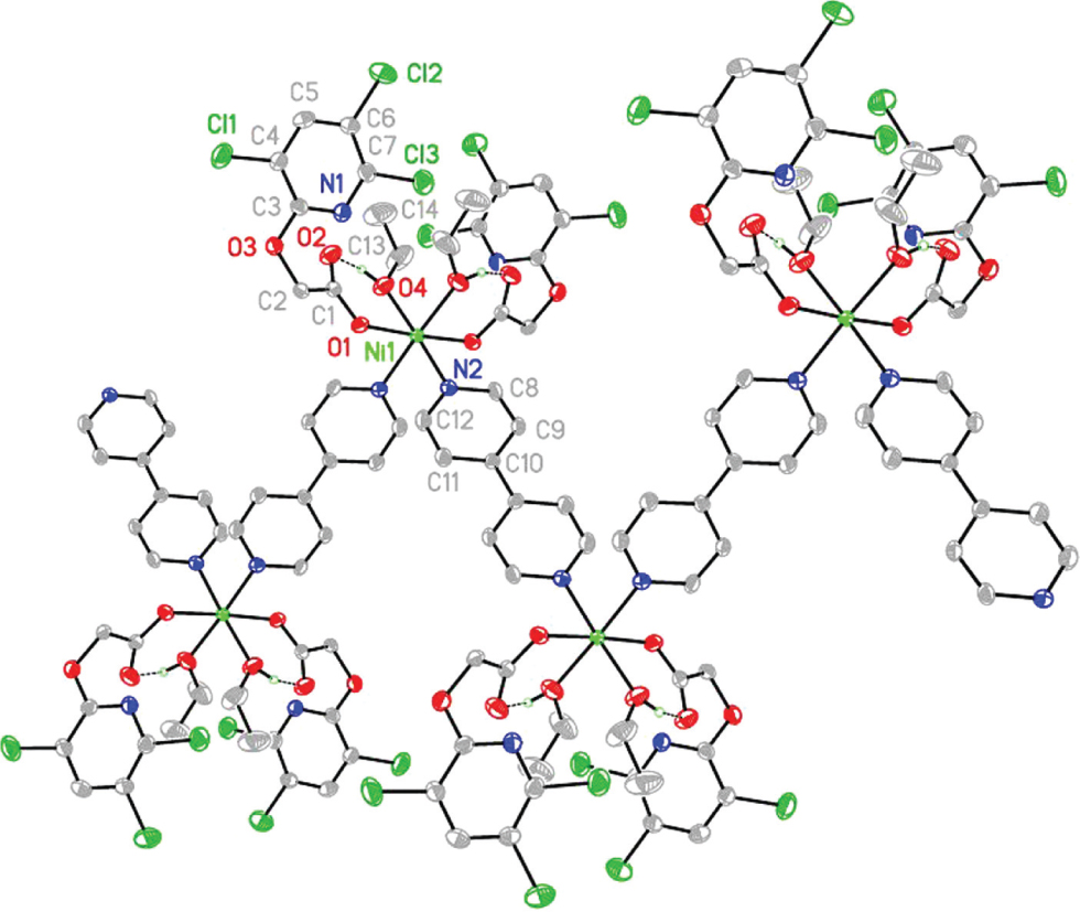 - The crystal structure of catena-poly[(μ2-4,4′-dipyridine-κ2N,N′)-bis(3,5,6-trichloropyridine-2-oxyacetato-κO)-bis(ethanol-κO)nickel(II)], C28H26Cl6N4NiO8