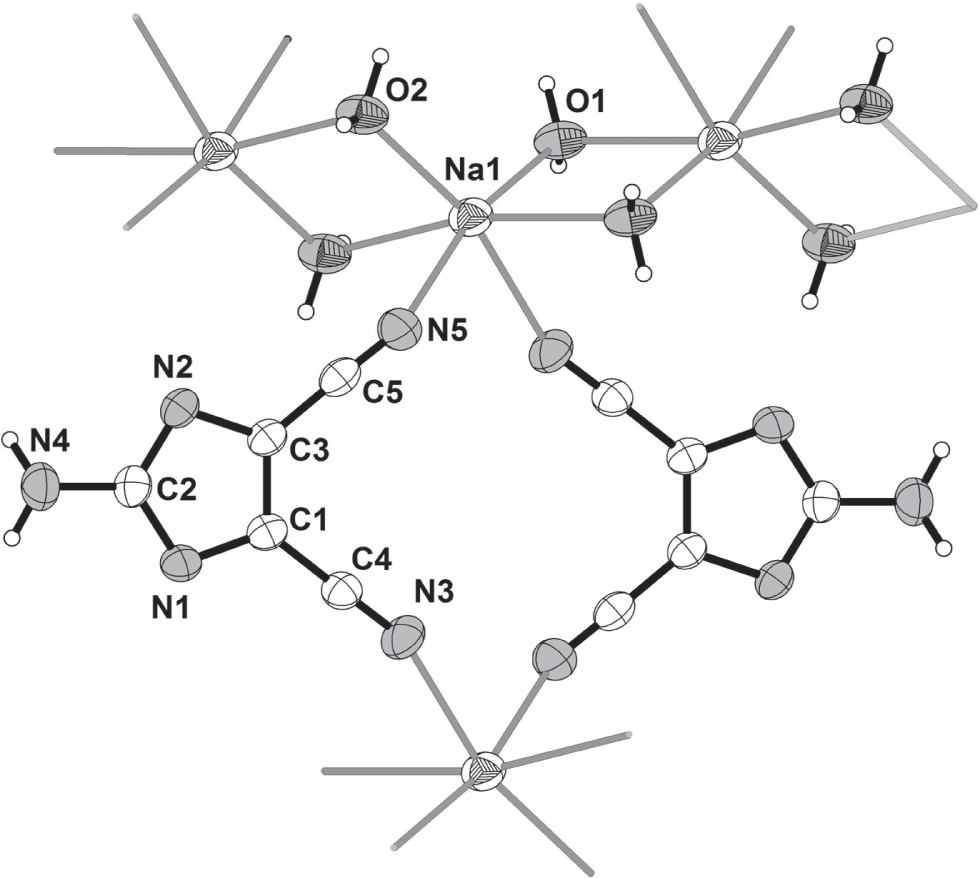 - Crystal structure of poly[μ2-diaqua-(μ2-2-amino-4,5-dicyano-κ2N:N′-imidazol-1-ide)sodium(I)], C5H6N5O2Na
