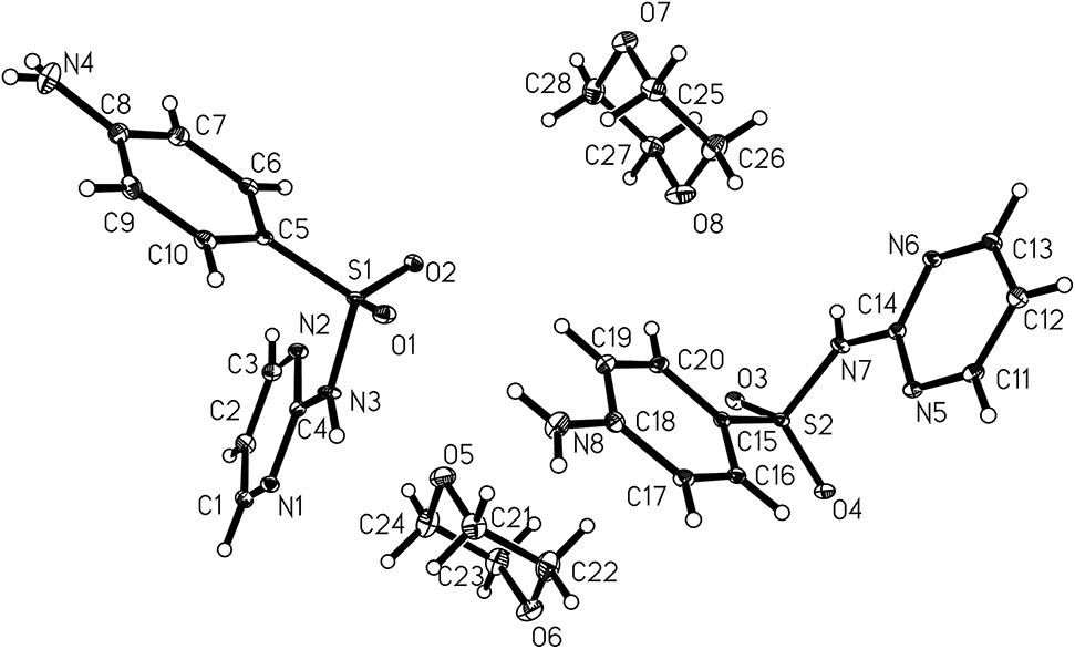 - Crystal structure of 4-amino-N-(2-pyrimidinyl)benzenesulfonamide–1,4-dioxane (1/1), C14H18N4O4S