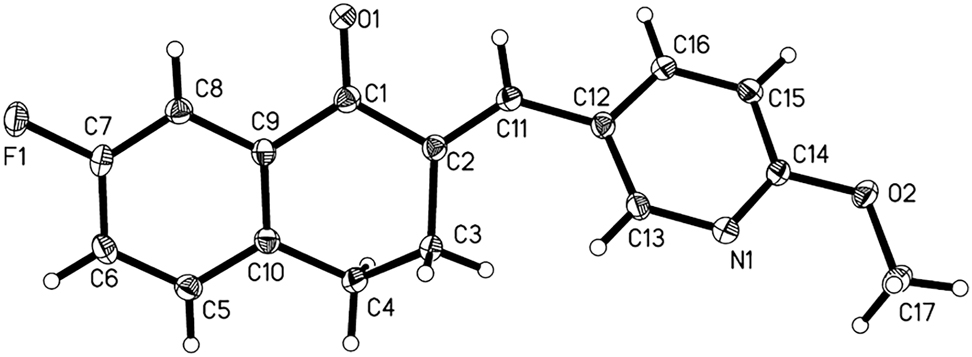 - Crystal structure of (E)-7-fluoro-2-((6-methoxypyridin-3-yl)methylene)-3,4-dihydronaphthalen-1(2H)-one, C17H14FNO2