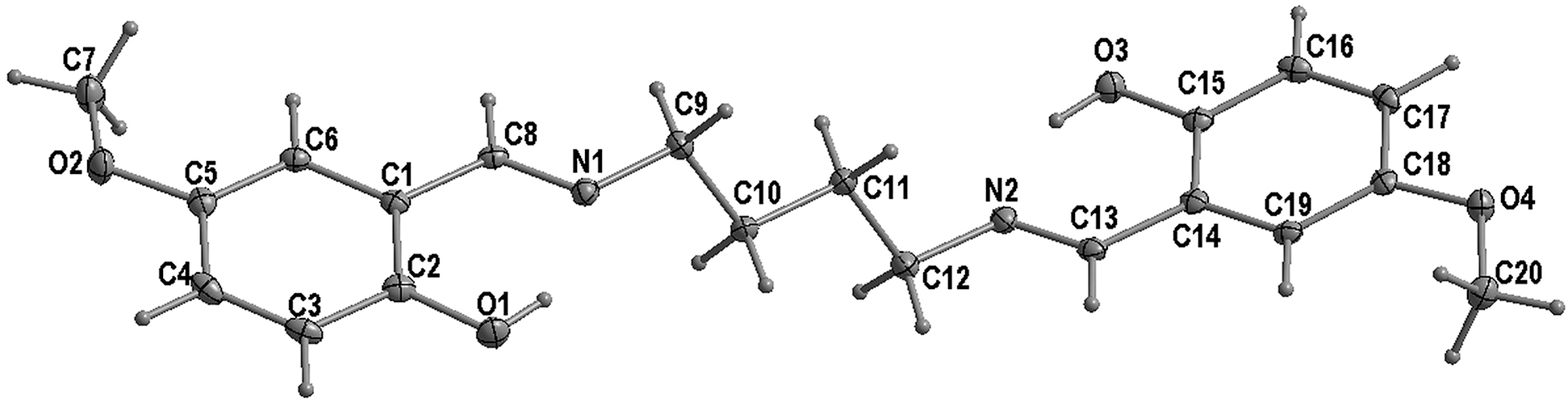 - Crystal structure of 2,2′-(butane-1,4-diylbis(azanylylidene))bis(methanylylidene))bis(4-methoxyphenol), C20H24N2O4