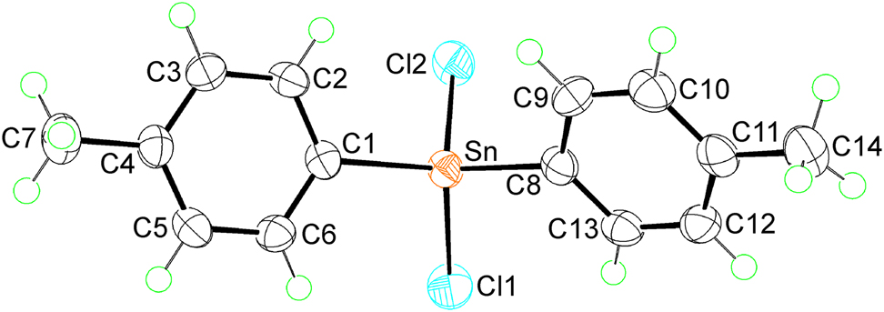 - Crystal structure of dichlorido-bis(4-methylphenyl-κC1)tin(IV), C14H14Cl2Sn