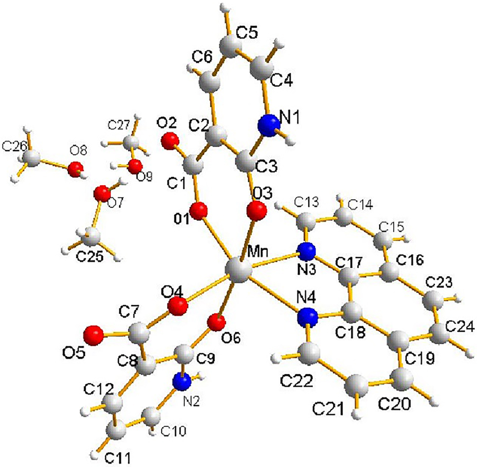 - The crystal structure of bis(2-oxidopyridin-1-ium-3-carboxylato-κ2O,O′)-(phenantroline-κ2N,N′)manganese(II) - methanol (1/3), C27H28N4O9Mn