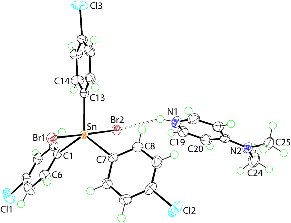 - Crystal structure of 4-(dimethylamino)pyridinium dibromido-tris(4-chlorophenyl-κC)stannate(IV), C25H23Br2Cl3N2Sn