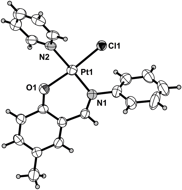 - Crystal structure of chlorido-(4-methyl-2-((phenylimino)methyl)phenolato-κ2 N,O)-(pyridine-κ1 N)platinum(II), C19H17ClN2OPt