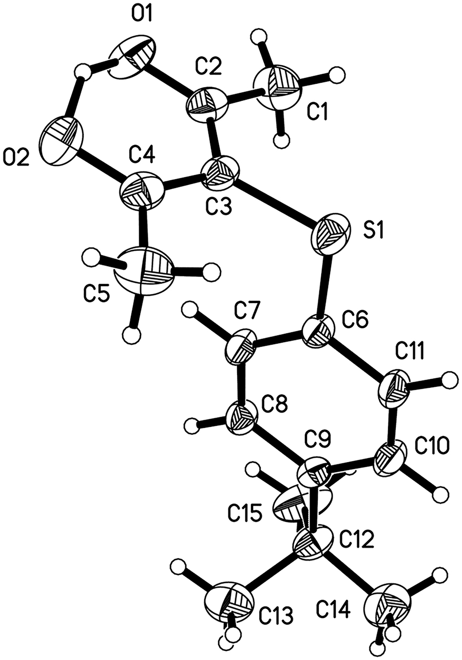 - Crystal structure of (E)-3-((4-(tert-butyl)phenyl)thio)-4-hydroxypent-3-en-2-one, C15H20O2S