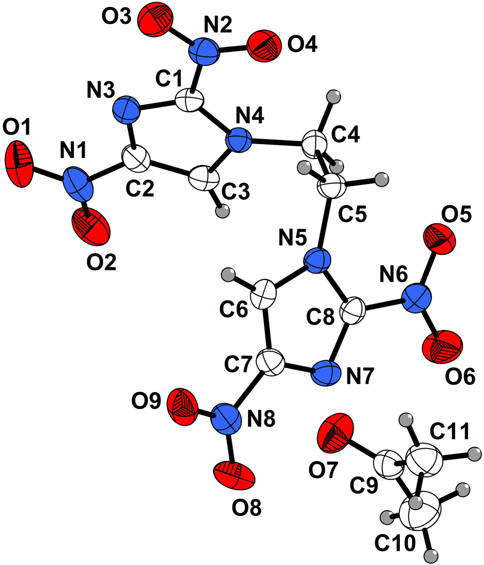 - The crystal structure of 1,2-bis(2,4-dinitro-1H-imidazol-1-yl)ethane ─ acetone (1/1), C11H12N8O9