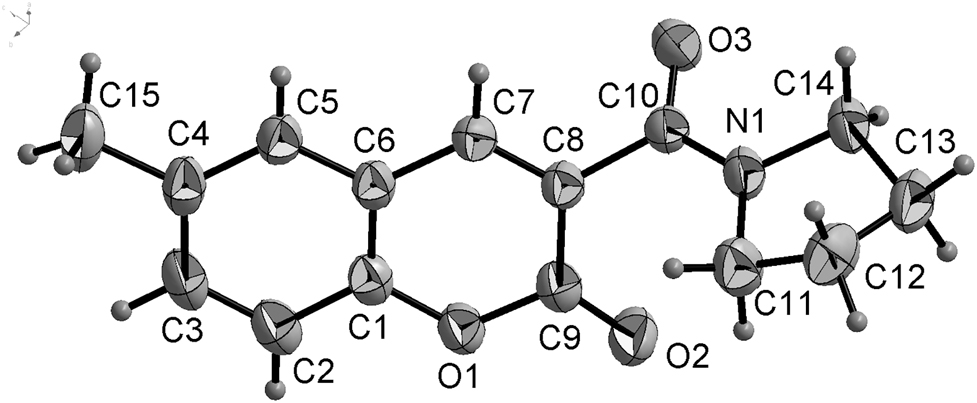 - Crystal structure of 6-methyl-3-(pyrrolidine-1-carbonyl)-2H-chromen-2-one, C15H15N1O3