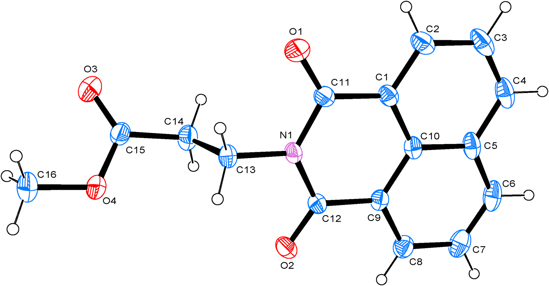 Home Crystal structure of methyl 3-(1,3-dioxo-1H-benzo[de]isoquinolin-2(3H)-yl)propanoate, C16H13NO4