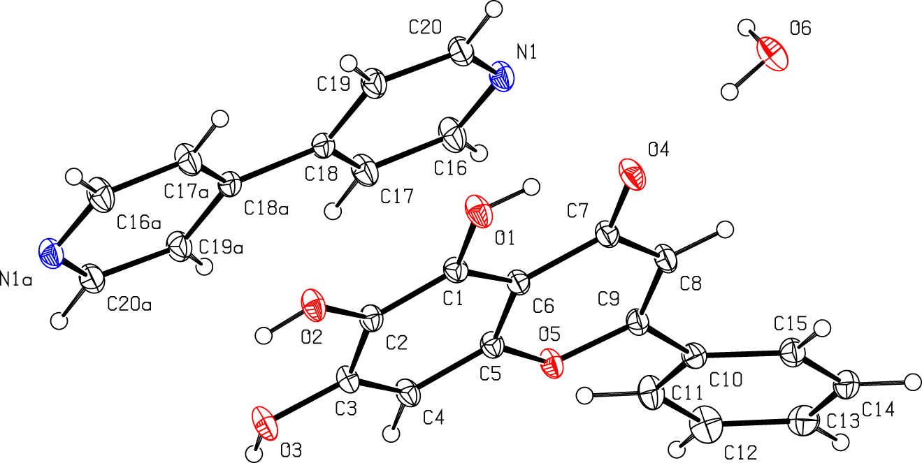 - The crystal structure of 4,4′-bipyridine-5,6,7-trihydroxy-2-phenyl-4H-chromen-4-one-water(1/2/2), C40H32N2O12