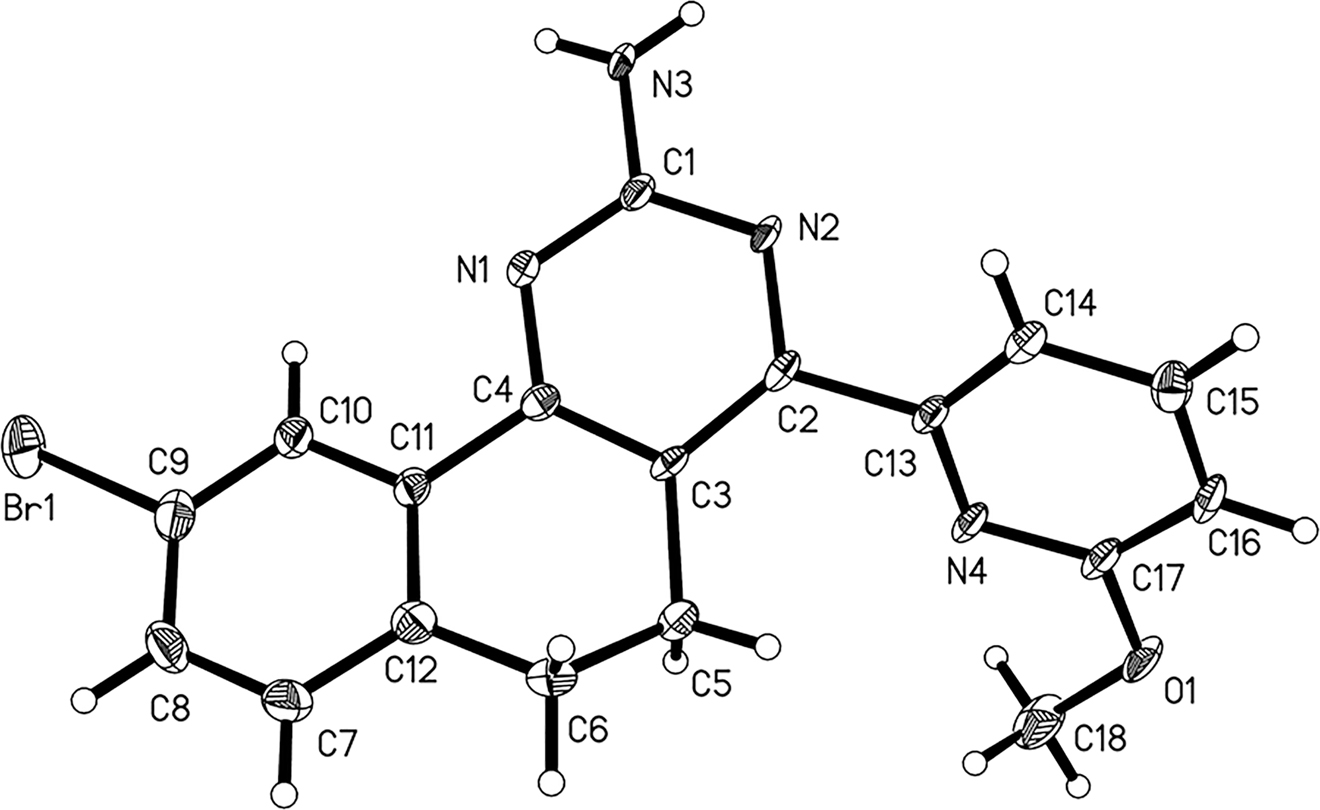 7. Crystal structure of 9-bromo-4-(6-methoxypyridin-2-yl)-5,6-dihydrobenzo[h]quinazolin- 2-amine, C18H15BrN4O