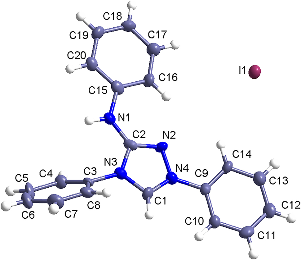 Startseite The crystal structure of 3-anilino-1,4-diphenyl-4H-1,2,4-triazol-1-ium iodide, C20H17N4I