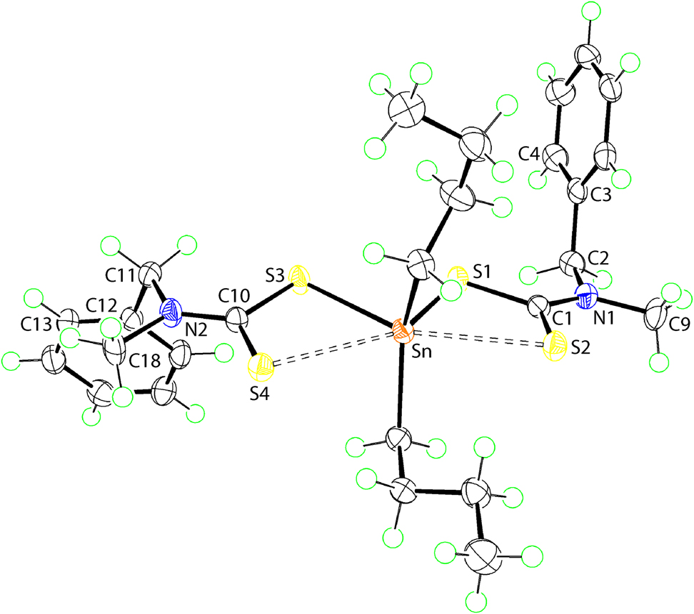 - Crystal structure of bis[benzyl(methyl)carbamodithioato-κ 2 S,S′]-di-n-butyltin(IV), C26H38N2S4Sn