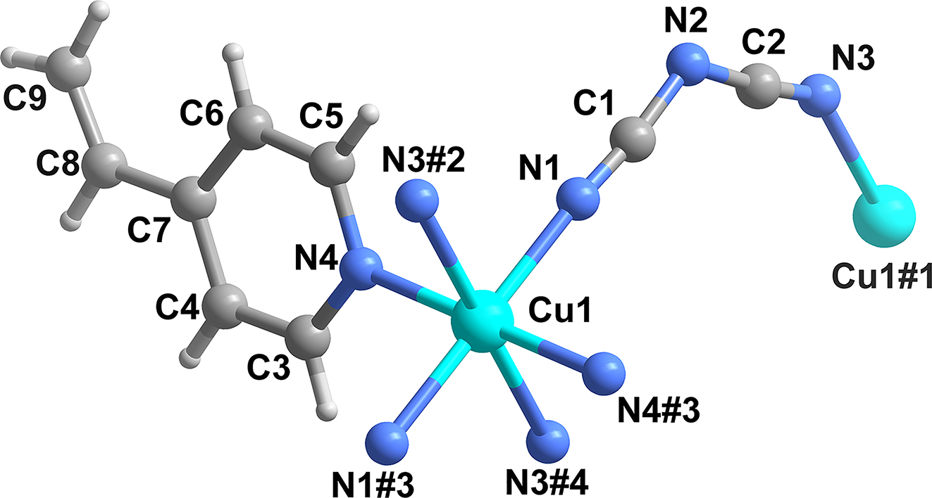 - Crystal structure of catena-poly[bis(μ2-dicyanamide-κ2 N:N′)-bis(4-vinylpyridine-κN)-copper(II)], C18H14CuN8