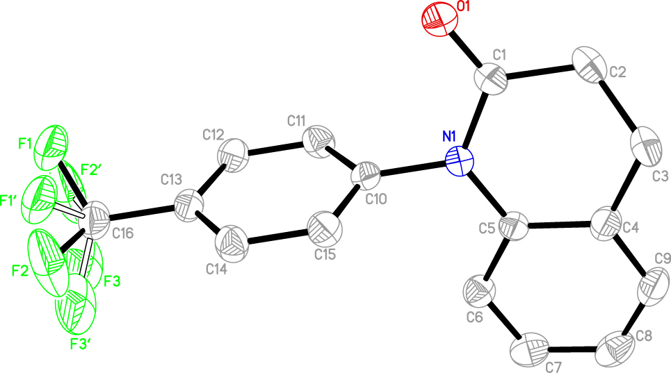 Home The crystal structure of [1-(4-(trifluoromethyl)phenyl)-3,4-dihydroquinolin-2(1H)-one], C16H12F3NO