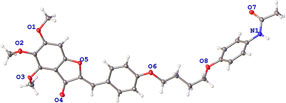 - Crystal structure of (Z)-N-(4-(4-(4-((4,5,6-trimethoxy-3-oxobenzofuran-2(3H)-ylidene)methyl)phenoxy)butoxy)phenyl)acetamide, C30H31NO8