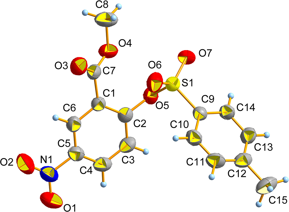 Home The crystal structure of methyl 5-nitro-2-(tosyloxy)benzoate, C15H13NO7S
