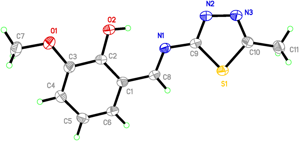 - The crystal structure of (E)-2-methoxy-6-(((5-methyl-1,3,4-thiadiazol-2-yl)imino)methyl)phenol, C11H11N3O2S