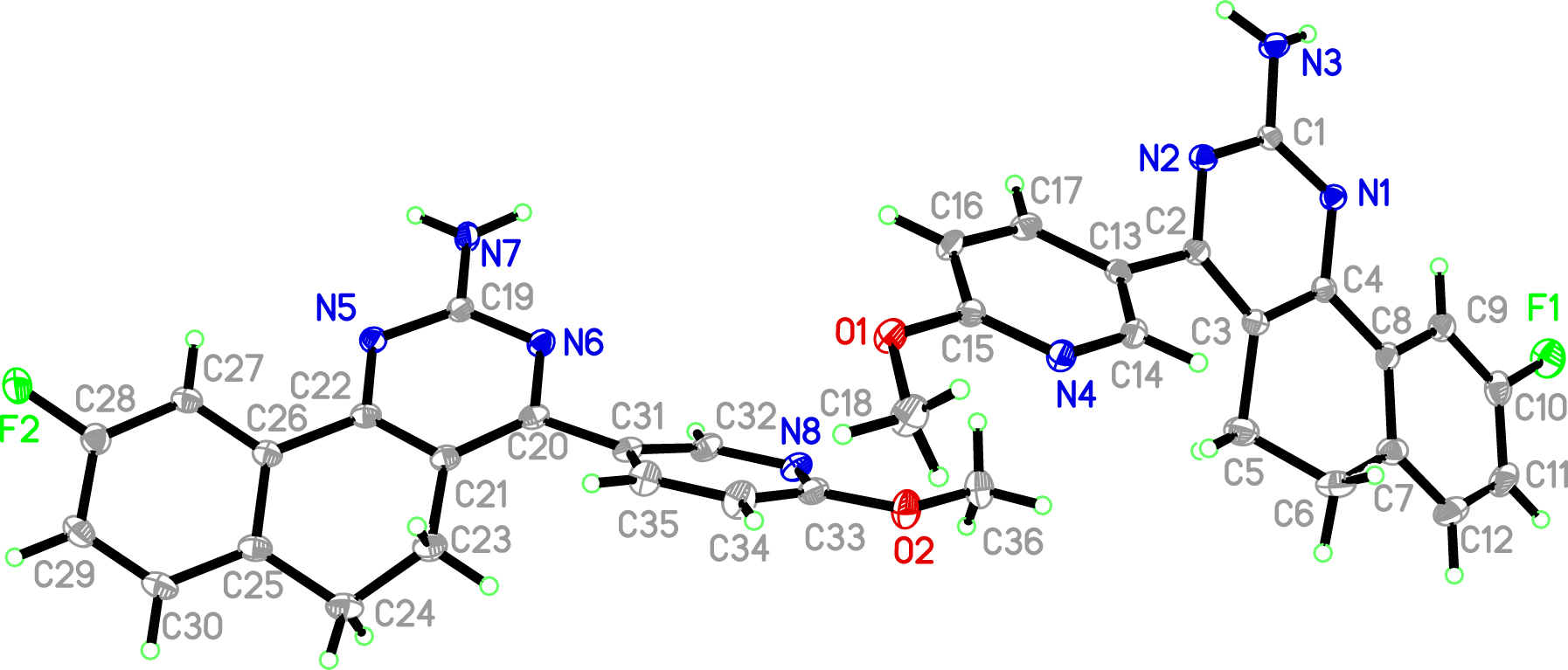 - Crystal structure of 9-fluoro-4-(6-methoxypyridin-3-yl)-5,6-dihydrobenzo[h]quinazolin-2-amine, C18H15FN4O