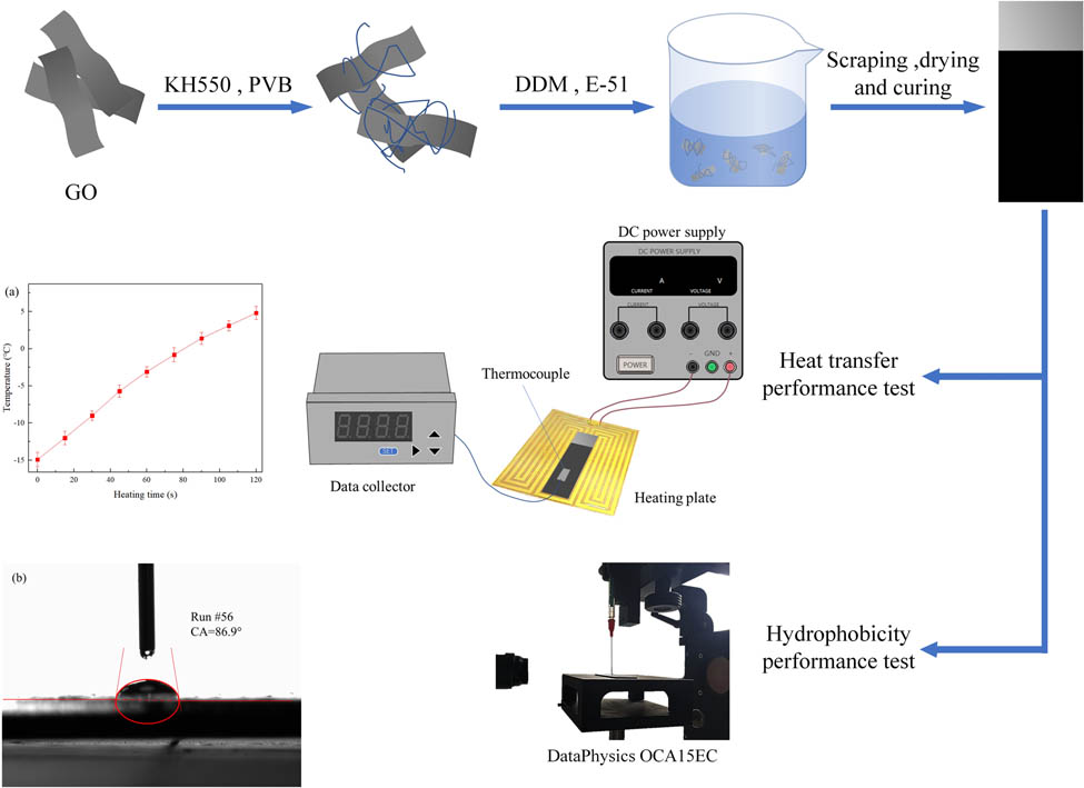 However, the anti-/deicing performance of the coating was seldom considered in the past works, and the thermal conductivity and hydrophobicity of graphene-doped epoxy coating were rarely reported. Both the thermal conductivity and hydrophobicity have influence on the anti-/deicing effect of the coating. In the process of coating preparation, the thermal conductivity and hydrophobicity will be influenced by the preparation technology. Therefore, in order to prepare epoxy coating with good anti-/deicing performance, it is necessary to comprehensively consider the thermal conductivity and hydrophobicity.