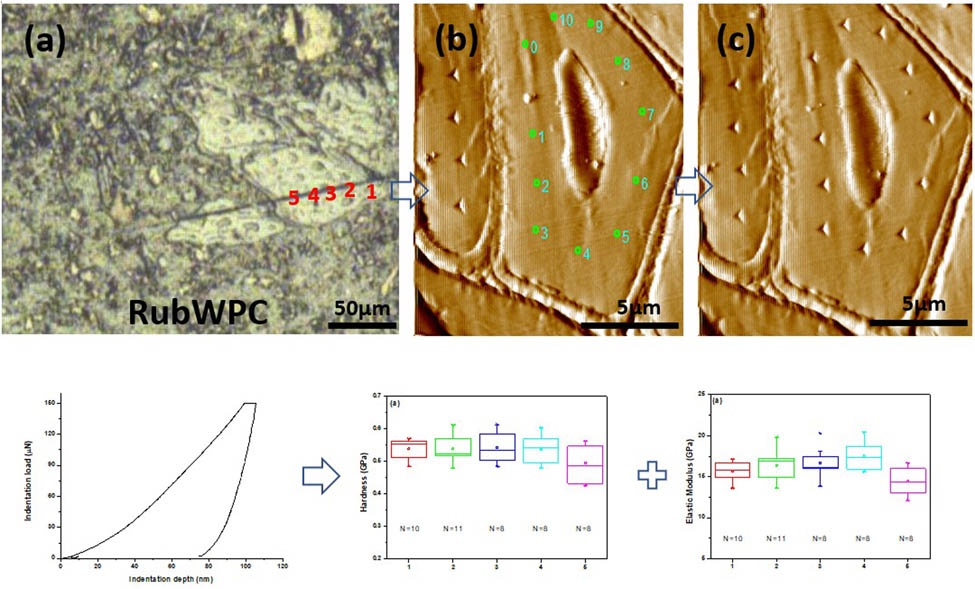 Nanomechanical properties of untreated and MAPE and Si69 treated RubWPC by nanoindentation.
