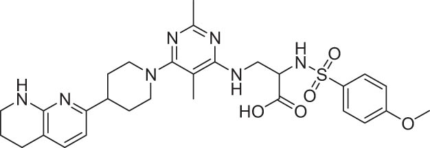 | Nonpeptide | MK-0429 (l-000845704) | Selective antagonist, orally active, targets ανβ1, ανβ3, ανβ5, ανβ6, ανβ8, and α5β1 | Pan-integrin antagonist | [116] |