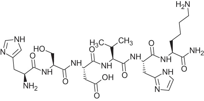 | HSDVHK-NH2 | ανβ3, antagonist of integrin ανβ3-vitronectin interaction | Site-specific RGD recognition, antagonist against ανβ3-GRGDSP, integrin ανβ3-vitronectin interaction, with an IC50 of 1.74 pg/mL | [113,114] | |