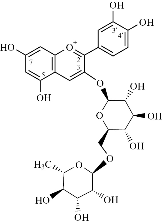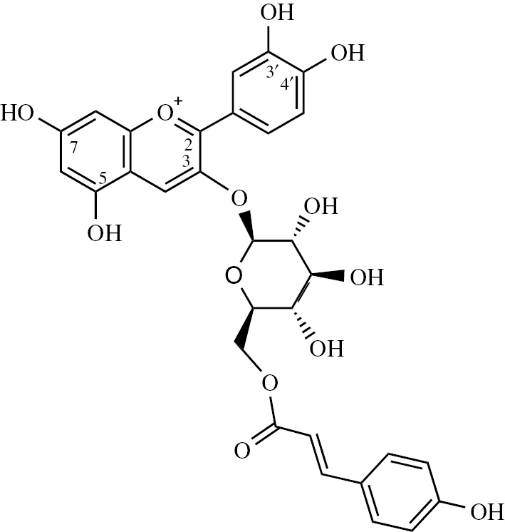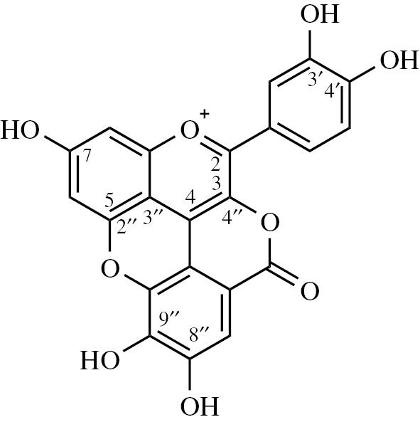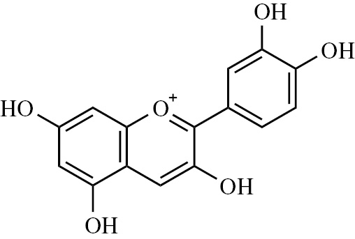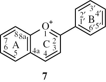 Anthocyanidins are compounds derived from a flavylium (2-phenyl-1λ4-benzopyran-1-ylium or 2-phenylchromenylium) ion 7. Anthocyanidins display colours from red to purple and, together with the 3-glycosides of anthocyanidin, the anthocyanins, represent a large group of plant pigments.