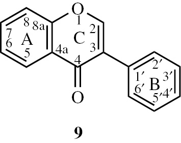 The isoflavonoids are compounds derived from the parent structure 3-phenyl-3,4-dihydro-2H-1-benzopyran (8).