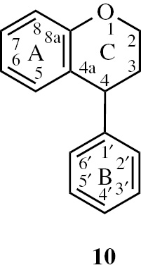 The neoflavonoids are compounds with a 4-phenyl-3,4-dihydro-2H-1-benzopyran parent structure 10.