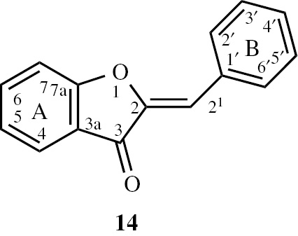 Aurones are compounds derived from (2Z)-2-benzylidene-1-benzofuran-3(2H)-one [alternative name: (2Z)-2-(phenylmethylidene)-1-benzofuran-3(2H)-one] (aurone, compound 14).