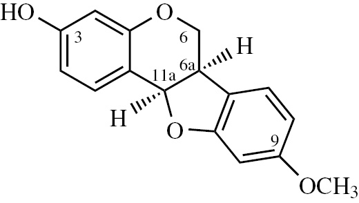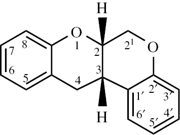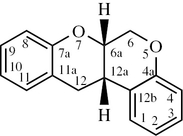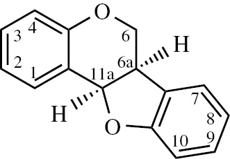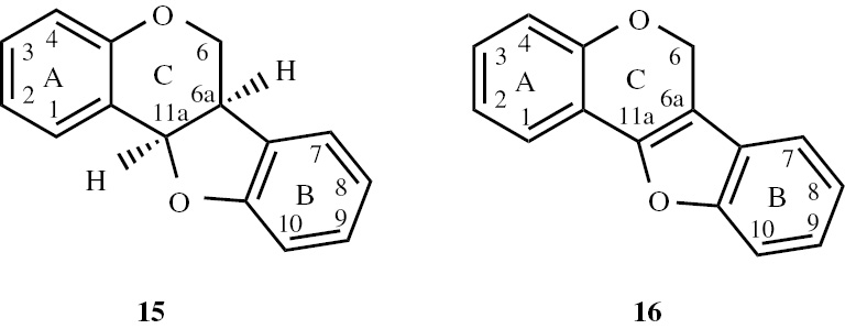 Pterocarpans are compounds derived from (6aR,11aR)-6a,11a-dihydro-6H-[1]benzofuro[3,2-c][1]benzopyran (15), and their 6a,11a-didehydro derivatives 16 are named coumestans. They are numbered systematically following the numbering rules for fused ring systems (see P-25.3.3 [6] and FR-5 [10]).