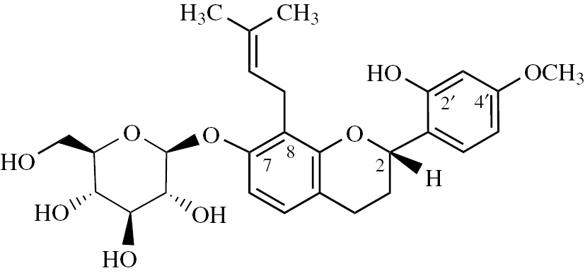 2-[(2S)-7-(β-d-glucopyranosyloxy)-8-(3-methylbut-2-en-1-yl)chroman-2-yl]-5-methoxyphenol