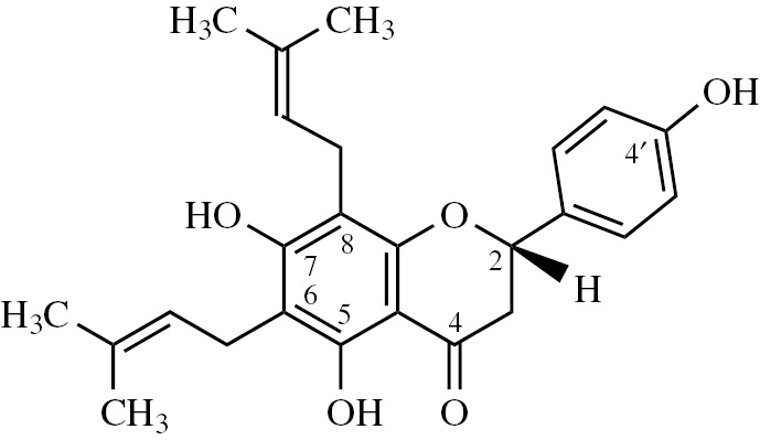 (2S)-4′,5,7-trihydroxy-6,8-bis(3-methylbut-2-en-1-yl)flavan-4-one