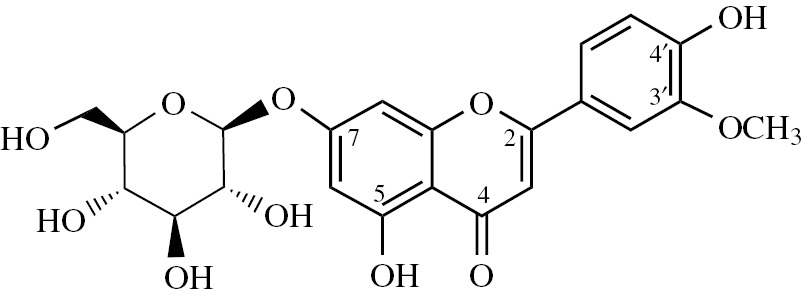 InChI=1S/C21H20O10/c22-7-15-18(26)19(27)20(28)21(31-15)30-11-5-13(24)16-14(6-11)29-8-12(17(16)25)9-1-3-10(23)4-2-9/h1-6,8,15,18-24,26-28H,7H2/t15-,18-,19+,20-,21-/m1/s1