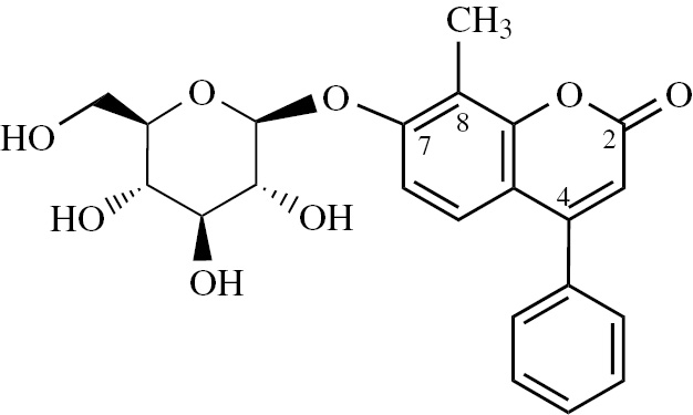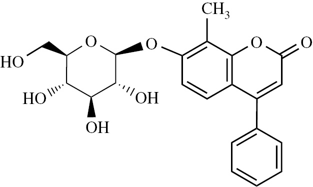 InChI=1S/C22H22O8/c1-11-15(28-22-20(27)19(26)18(25)16(10-23)29-22)8-7-13-14(9-17(24)30-21(11)13)12-5-3-2-4-6-12/h2-9,16,18-20,22-23,25-27H,10H2,1H3/t16-,18-,19+,20-,22-/m1/s1