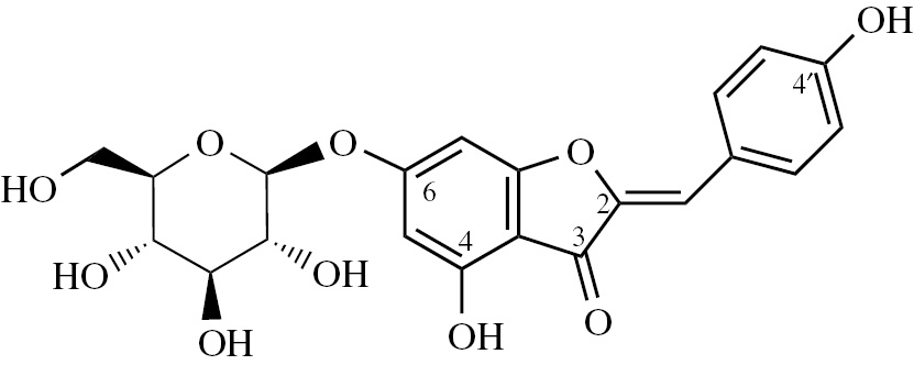 InChI=1S/C21H20O10/c22-8-15-18(26)19(27)20(28)21(31-15)29-11-6-12(24)16-13(7-11)30-14(17(16)25)5- 9-1-3-10(23)4-2-9/h1-7,15,18-24,26-28H,8H2/b14-5-/t15-,18-,19+,20-,21-/m1/s1