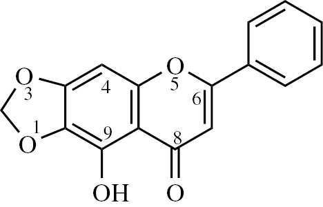 InChI=1S/C16H10O5/c17-10-6-11(9-4-2-1-3-5-9)21-12-7-13-16(20-8-19-13)15(18)14(10)12/h1-7,18H,8H2