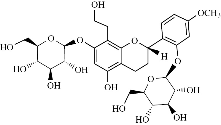 2-[(2S)-7-(β-d-glucopyranosyloxy)-5-hydroxy-8-(2-hydroxyethyl)-3,4-dihydro-2H-chromen-2-yl]- 5-methoxyphenyl β-d-glucopyranoside