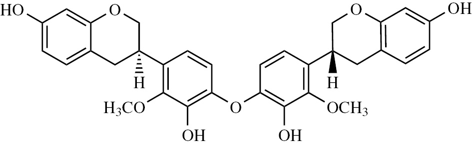 InChI=1S/C32H30O9/c1-37-31-23(19-11-17-3-5-21(33)13-27(17)39-15-19)7-9-25(29(31)35)41-26-10-8-24(32(38- 2)30(26)36)20-12-18-4-6-22(34)14-28(18)40-16-20/h3-10,13-14,19-20,33-36H,11-12,15-16H2,1-2H3/t19-,20-/m0/s1