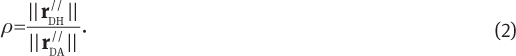 Next, the ratio ρ between and rDA is computed.